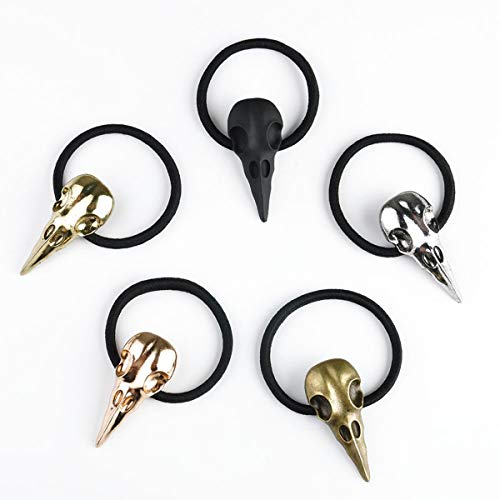Greatangle Cranio di corvo Fasce per capelli Amuleto di Viking Anello per capelli Elastico in metallo con teschio in metallo elastico Accessori per capelli neri