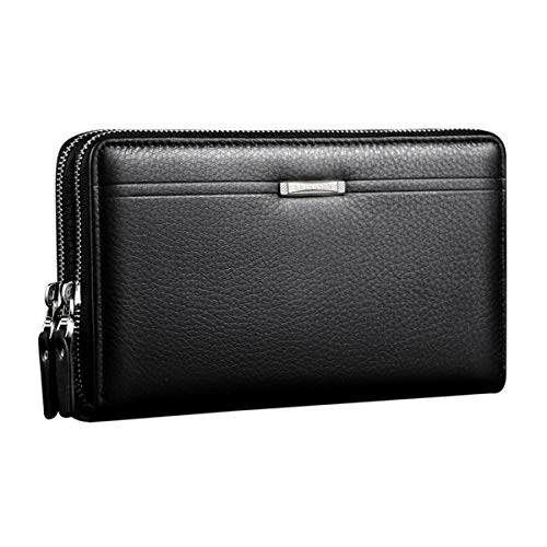 Greatangle Pochette da Uomo alla Moda Borsa Lunga Portafoglio in Pelle Borsa Modello Lichee Doppia Cerniera Borsa Maschile per Lavoro Shopping Nero