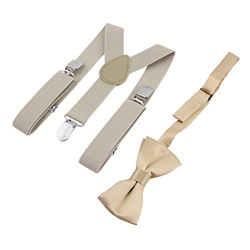 Greatangle Regolabile ed Elastico con Clip in Metallo Poliestere Design per Bambini Bretelle e Papillon Set di Cravatte abbinate Abiti Papillon Beige