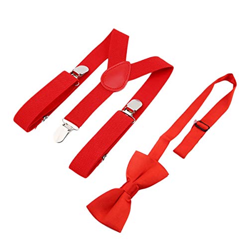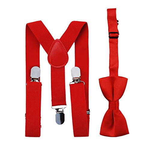 Greatangle Regolabile ed Elastico con Clip in Metallo Poliestere Design per Bambini Bretelle e Papillon Set Cravatte abbinate Abiti Papillon Rosso