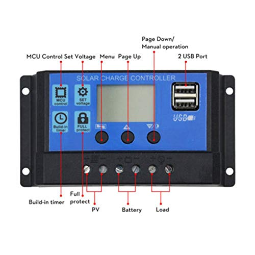 Greatangle PWM Regolatore pannello solare 30A 12V-24V Auto Dual USB Display digitale Regolatore di carica solare per batterie al piombo nero