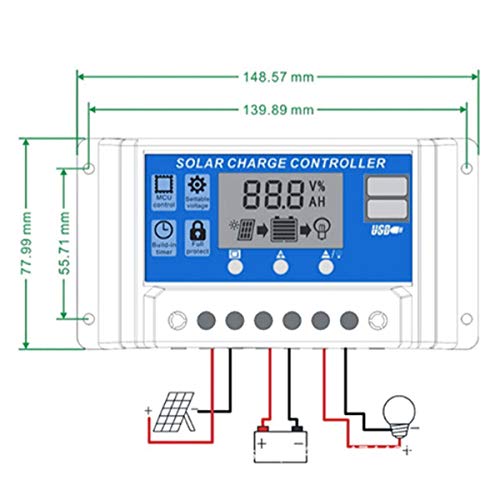 Greatangle Regolatore professionale doppio pannello USB 12V / 24V 10A Regolatore di carica batteria Regolatore display LCD Regolatore solare nero e blu