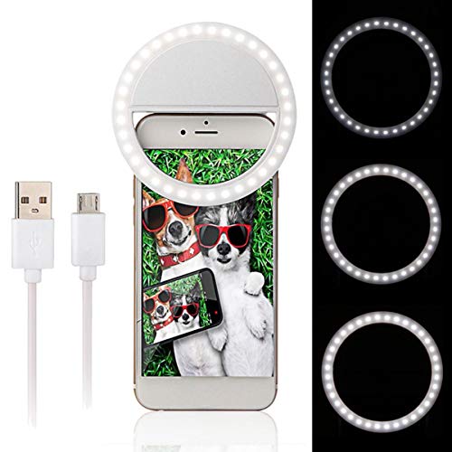 Greatangle Ricaricabile Self Artifact LED Anello Fill Night Flash Light Clip per Smartphone Autoscatto Beauty Light Bianco