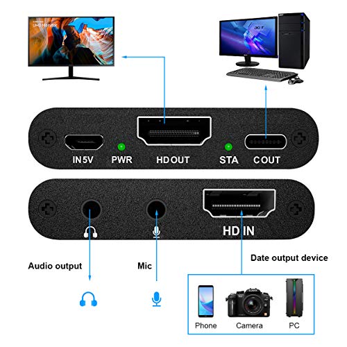 GREATHTEK Schede di Acquisizione Audio Video, Audio Capture Card USB2.0 4K& Microphone HD 1080P per Streaming, Scheda Acquisizione Video Compatibile PS4/Camera/PC ECC.
