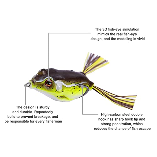 ⇛Exquisite Craftsmanship: Made with advanced technology, the hook tip is like a flat triangle, sturdy and durable, the hook tip is sharp, the piercing is fast. Topwater Frog Lure doesn't affect the picking of fish, and it is not as easy to disengage as ordinary fish hooks.