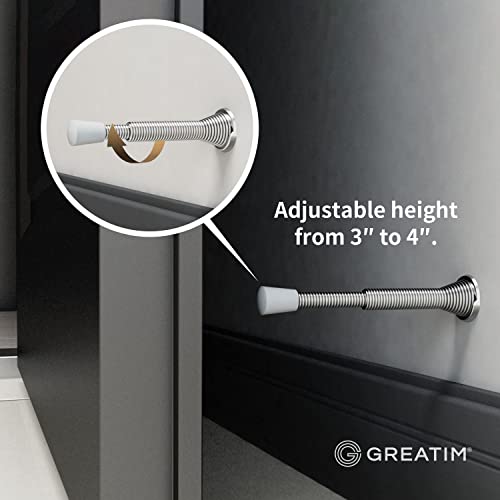 Design regolabile e durevole: i fermaporta a molla GT-DS0015 sono regolabili in altezza da 3 a 4 "fermaporta a molla. Il supporto da parete per fermaporta GT-DS0015 è realizzato in acciaio ad alto tenore di carbonio e reso resistente per resistere all'uso quotidiano senza rompersi facilmente.