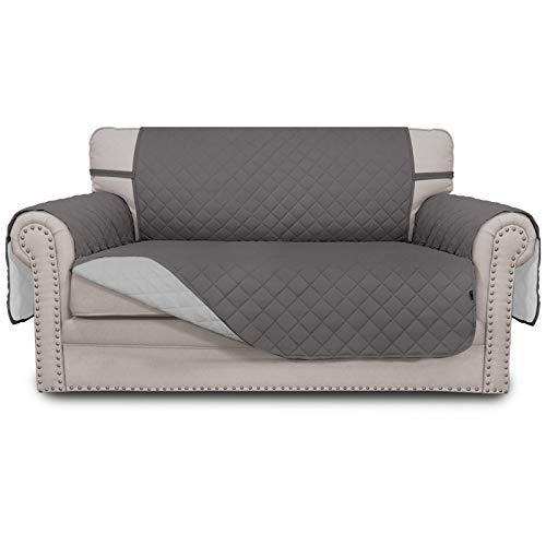 Greatime copridivani, slipcovers, Reversibile Trapuntato mobili Protector, migliorata Couch Scudo con Cinghie Elastiche, Anti-Scivolo, Pet Bambini, Bambini, Cani divanetto Grigio/Grigio Chiaro
