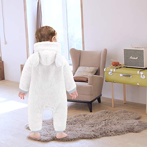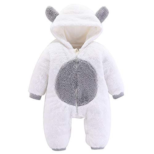 Greatmtx - Pagliaccetto per neonato, a maniche lunghe, in pile vellutato, con cappuccio, da 0 a 12 mesi. bianco 2 mesi