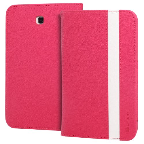 Greatshield TOME Leather Case w/Hand Strap and Card Pockets for Samsung Galaxy Tab 3 7.0 - Pink w/White Stripe
