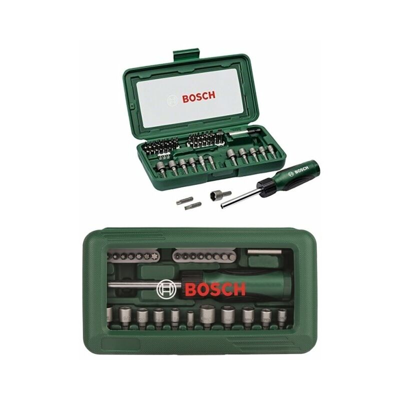 Set di inserti con cacciavite/giravite 46 pezzi riposti in comodo cofanetto in plastica, adatti anche per trapano a batteria. Il kit include inserti torx, flat (a taglio), philips (a croce), bussole... Il cacciavite è reversibile!