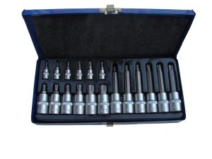 GrecoShop Kit Inserti Impronta torx 18 Pezzi con boccola/Bussola 1/2" - 1/4" - MOD. B (cod.:4264)