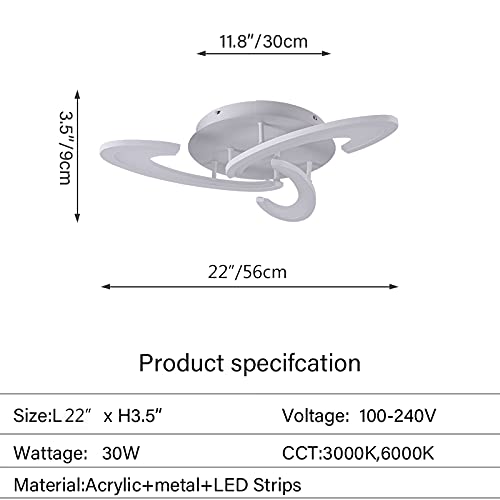 Dimensioni dell'apparecchio a led D * H: D22 pollici (56 cm) * H 3,5 pollici (9 cm). Potenza: 30 W, Tensione: 220 V, lampadina a LED inclusa, area di irradiazione: da 10 a 25 m2, durata media: 50.000 ore. (Nota: no dimmerabile)
