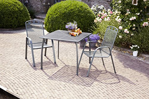 greemotion Tavoli da giardino e ambienti esterni come balconi, terrazze e verande - Tavolo in metallo color grigio ferro con rivestimento in plastica e dotato di elegante ripiano in acciaio reticolato