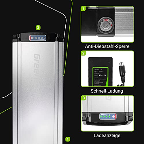 Green Cell Batteria per Bicicletta Elettrica 36V 12Ah 432Wh nel Motore 250W Rear Rack Ebike 4 Pin con Caricabatterie