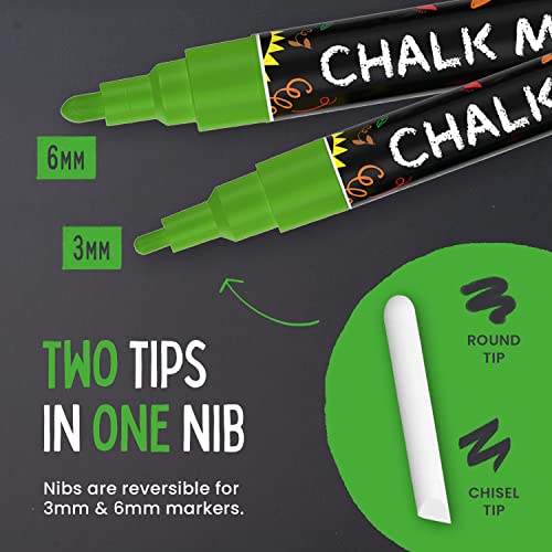 5 Green Chalkboard Chalk Pens - Green Dry Erase Markers for Blackboard, Chalkboard Signs, Windows, Glass | Variety Pack - Fine & Jumbo Size Ink Pen (1mm, 3mm, 6mm, 10mm, 15mm)