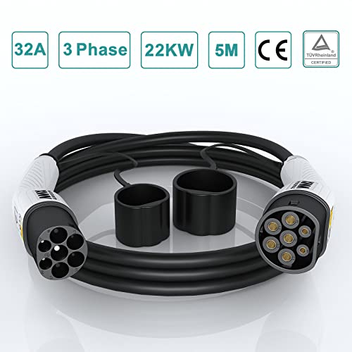 MAX GREEN EV/Cavo di Ricarica per Auto elettriche e Hybrid Plug-in, da Tipo 2 a Tipo 2, | 32Amp | Trifase | Potenza Massima in Uscita 22 KW | 5 Metri |