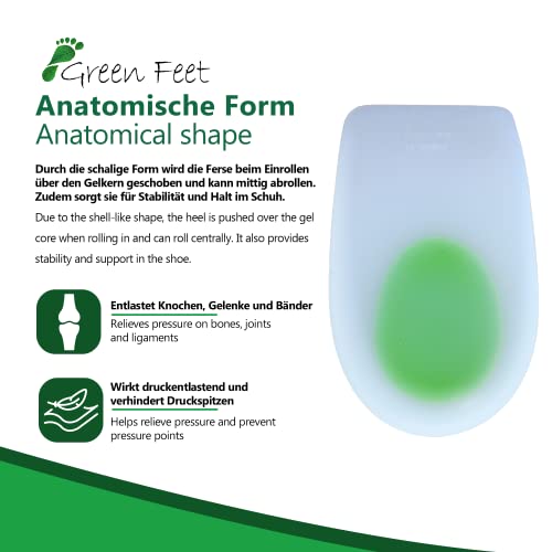 Green-Feet Cuscinetti in gel per tallone, anatomici, ideali in caso di dolori dovuti a fascite plantare e infiammazioni del tendine d'Achille trasparente transparent/gruen (Gr. XL = Gr.44-46)