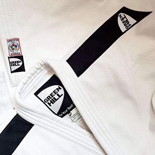 GREEN HILL JUDOGI Blu Professional IJF Approved Judo GI Kimono Unisex Blue (160 SLIM, BIANCO banda nera)
