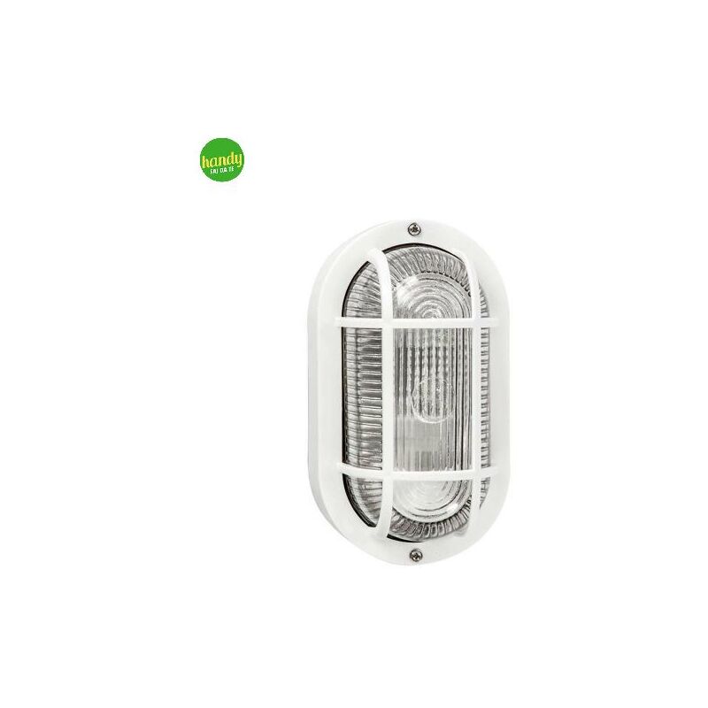 Applique da esterno, ovale, colore bianco del brand Green Light. La lampada ha struttura in pvc di colore bianco e copertura trasparente in vetro, con porta-lampada E27 e grado di protezione IP44. É adatto per resistere all'esterno in luoghi riparati (temperatura di esercizio da -20 c° a +40 c°). Facile da montare, è compatibile con lampadine E27 dalla potenza massima di 100W.