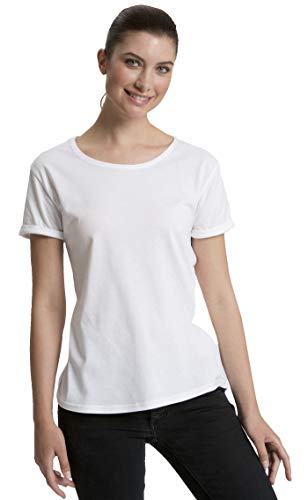 Green Cat Maglietta da donna, 100% cotone biologico, commercio equo, certificato Oeko-Tex ed Ecolabel, bianco, M