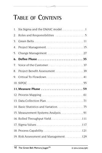 The Green Belt Memory Jogger: A Pocket Guide for Six SIGMA Success