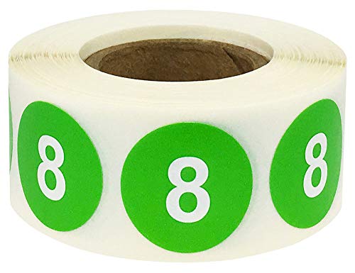 Hot Green numero 8 adesivi 0,75 pollici 500 etichette su un rotolo