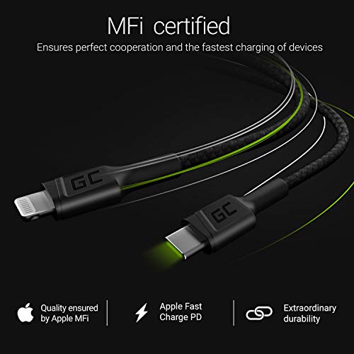 Cavo Green Cell Power Stream USB-C - Lightning 100cm con Supporto Power Delivery (Apple MFi Certified)