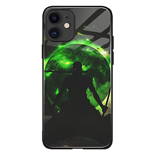 Green Moon Roronoa Zoro Anime Cover Shell giapponese Manga Anti-Drop Cover per telefono compatibile con (custodia in vetro temperato, iPhone 11)
