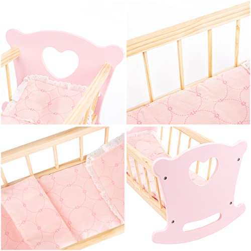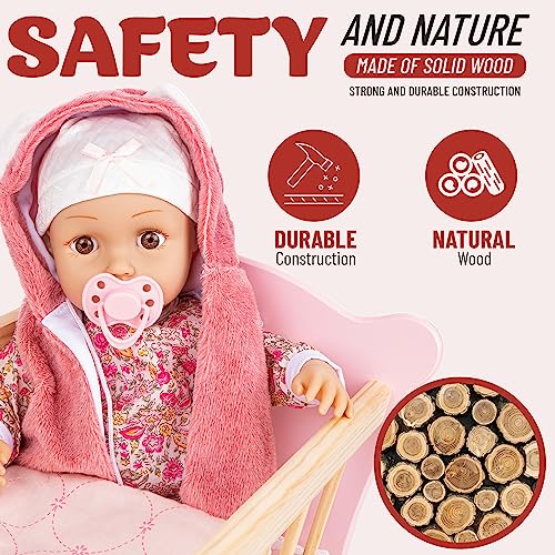 Green series Culla per Bambole Reborn, Culla Bambole Legno - Set Culla e Trapunta, un Cuscino e un Lenzuolo, per max. Lunghezza 49,5 cm, Culla Giocattolo per Bambole, Modello GS2100 (GS2101)