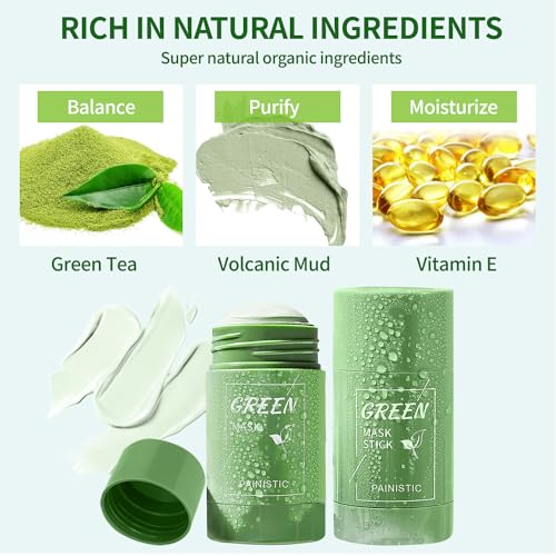 Green Mask Stick, 2 Pack Maschera Punti Neri di Argilla Viso Purificante, Green Tea Mask Stick Pulizia Profonda per Punti neri Rimozione, Regolazione Acqua Olio in Equilibrio e Idratante