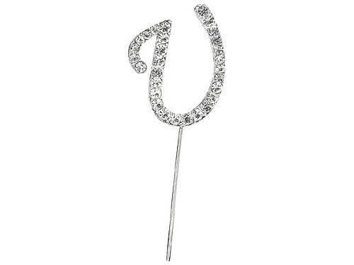 Club Green Strass Lettera U su Stelo, Argento, 4.5 cm