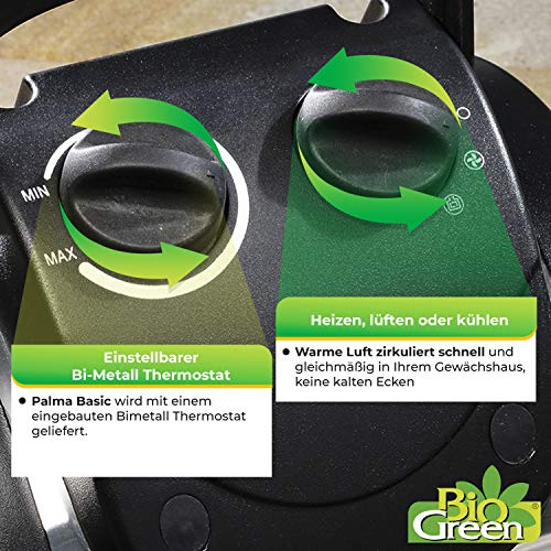 Bio Green Ventola riscaldante Palma Portatile, Grigia/Nera, 2000W