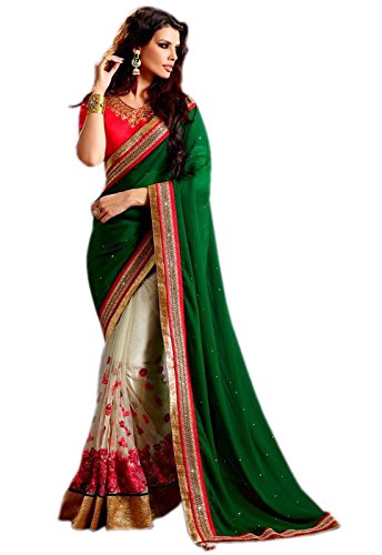 Try n Get's Green and White Color Fancy Designer Georgette Embroidered Saree