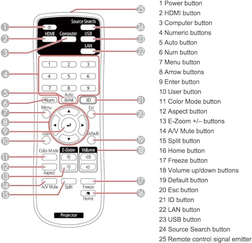 Telecomando proiettore completamente funzionale per Epson: 2198635. Nessun accoppiamento o programmazione necessaria.