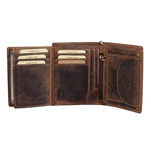 Vera pelle portafoglio in pelle di vitello cerato e spazzolato