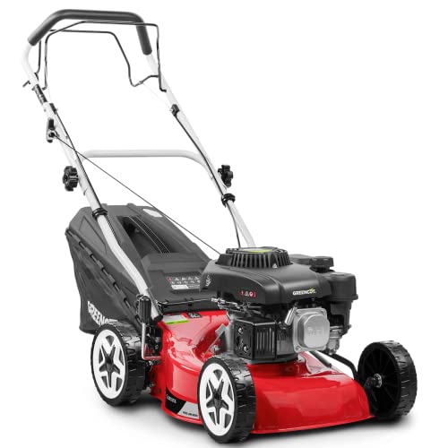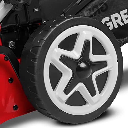 GREENCUT GLM590X - Tosaerba a benzina motore a 4 tempi 132cc 4.5hp, larghezza di taglio 41 cm, altezza di taglio 25-75mm regolabile in 7 posizioni, cesto 45L, raccolta 2 in 1