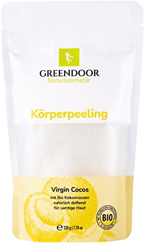 GREENDOOR Olio di cocco VIRGIN 220g, vergine, profumo naturale di cocco fresco, scrub allo zucchero naturale senza profumo, anti-invecchiamento, contro la cellulite, cosmetici naturali vegani