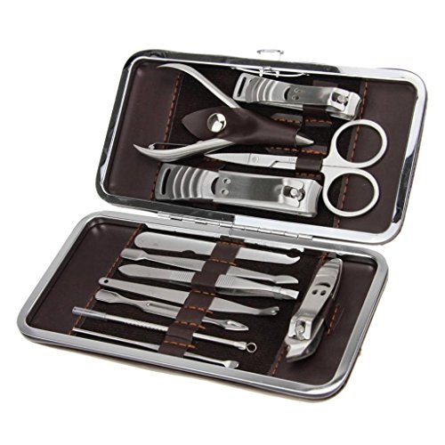 Greenery 12 Pcs Stainless Steel Vogue Nail Care Personal Manicure & Pedicure Set Travel & Grooming Kit with PU leather case
