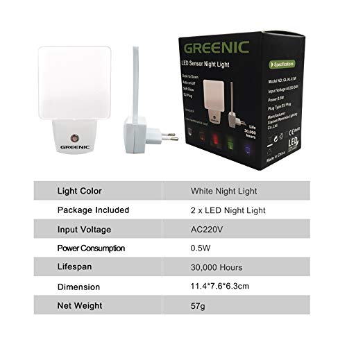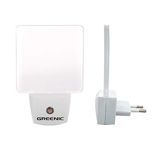 Greenic 2 Pezzi LED Luce Notturna da Presa con Sensore Crepuscolare Automatico Luce Notte Bambini 0.5 W Risparmio Energetico per Camera da Letto,Bianco
