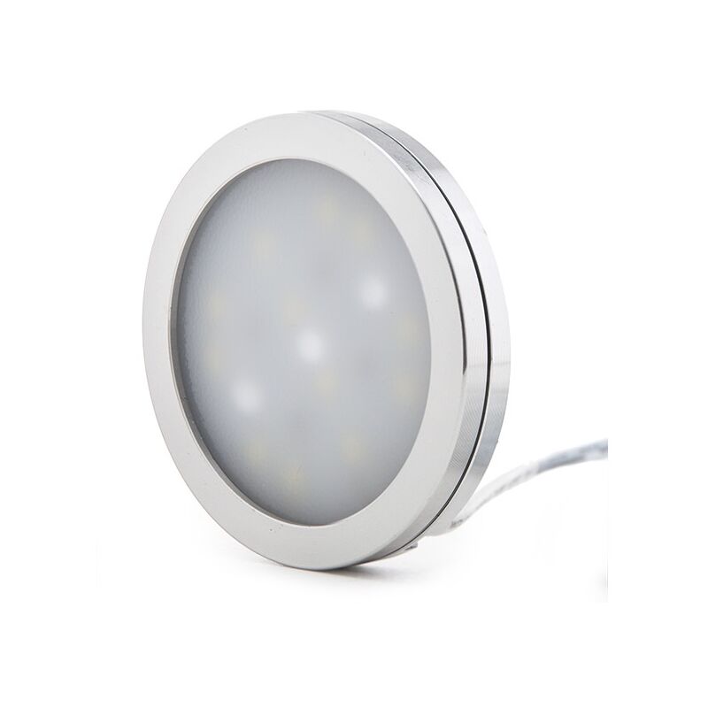 La mini plafoniera LED circolare di diametro 60mm con spessore 9mm per essere installata in mobili, offre soluzioni per uffici, fabbriche e per uso residenziale. da installare a 12VDC (Compatibile con Driver 220VAC / 12VDC per Mini Plafoniera). Ha un'alta efficienza (100 Lm/W) consumando 3W tramite 12 LED SMD5050, riuscendo a fornire un flusso luminoso di 300Lm uniformemente distribuito da un diffusore in plastica opale da cui si ottiene un indice di resa cromatica di 80 . Il suo consumo rappresenta un valore di 3kWh / 1000h, riducendo la quantità di energia fatturata e le emissioni di gas inquinanti in atmosfera. Questo mini soffitto può essere alimentato con un driver non incluso nella confezione che deve essere collegato direttamente alla rete, con connettore di uscita compatibile con il collegamento del mini soffitto, inoltre sono inclusi gli accessori necessari per l'installazione del mini soffitto. Rifinito in colore grigio costruito con alluminio. La mini plafoniera ha un grado