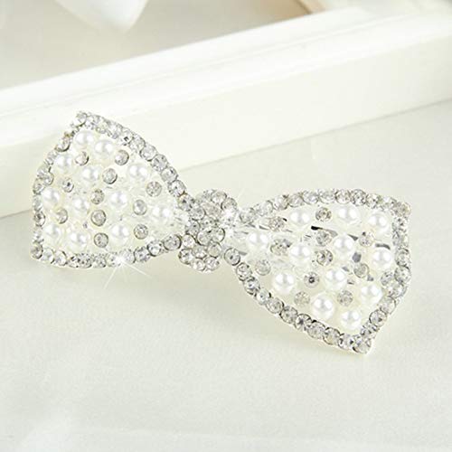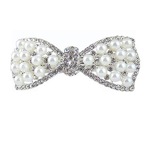 Greenlan - Fermaglio per capelli da donna, con strass, con fiocco, colore: argento
