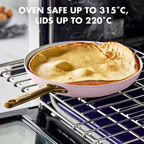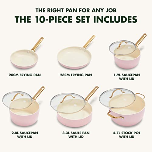 GreenPan Reserve Set di Pentole Antiaderenti in Ceramica Anodizzata Dura, 10 Pezzi, Include Padella, Padella Sauté e Casseruola, Manico Oro, Senza PFAS, Induzione, Forno Sicuro, Rosa Pallido
