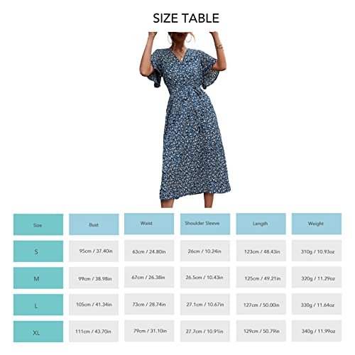 Greensen Abito estivo da donna, elegante, abito da festa, con scollo a V, abito da donna, abito da donna, abito da sera, abito da spiaggia, per il tempo libero, Motivo floreale blu., L