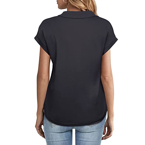 Greensen Camicia Estiva da Donna con Scollo a V Camicetta con Bavero Manica Corta T-Shirt con Top in Puro Colore Camicia Casual a Tunica Camicetta Ampia(S-Nero)