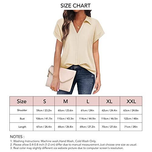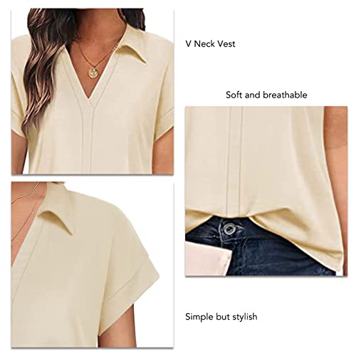 Greensen Camicia Estiva da Donna con Scollo a V Camicetta con Bavero Manica Corta T-Shirt con Top in Puro Colore Camicia Casual a Tunica Camicetta Ampia(M-Cachi)