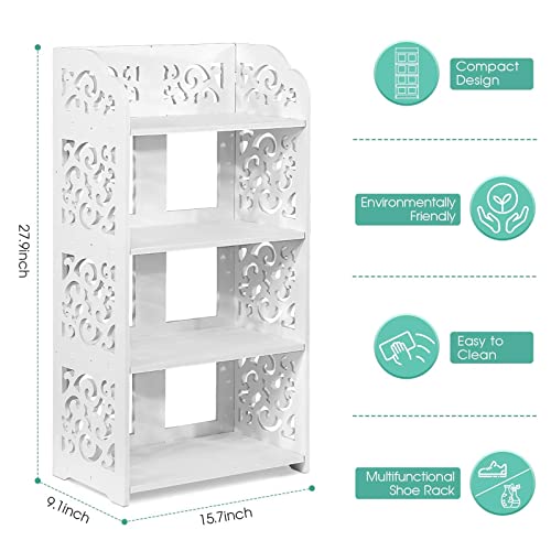 Greensen Scarpiera da Ingresso Scarpiera Bianca a 4 Livelli, Mobile Scarpiera Scarpiera da Bagno Piccola Scarpiera Moderna Intagliata, Scarpiera da Pavimento per Corridoi, Ingresso 40 x 23 x 71 cm