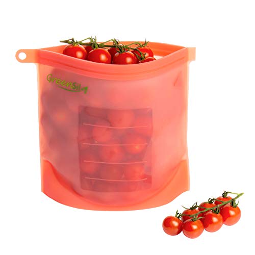 GreenSil Sacchetti riutilizzabili in silicone, per il cibo, ecologici, con chiusura ermetica, versatili, per conservare, congelare e cucinare carne, verdure e frutta, 1000 ml (4 pezzi)