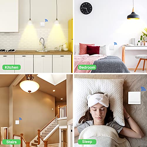 Interruttore Multiplo per Controllare una Luce: con un massimo di 5 interruttori radio può essere accoppiato un ricevitore, che consente di controllare una lampada con più interruttori per evitare il tradizionale cablaggio complesso. E un interruttore a parete può controllare più ricevitori, un pulsante può accendere tutti i dispositivi.