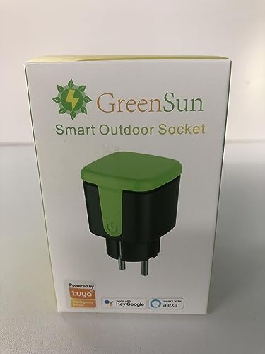 GreenSun Presa WiFi per Esterno, Compatibile con Alexa e Google Home Voice Control,Telecomando APP, funzione timer, resistente alle intemperie per interni ed esterni, impermeabile IP44