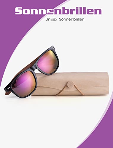 GREENTREEN Occhiali Da Sole Polarizzate per Uomo e Donna, Occhiali con Astine in Legno Lenti Polarizzate, UV 400 (rosa) (viola)